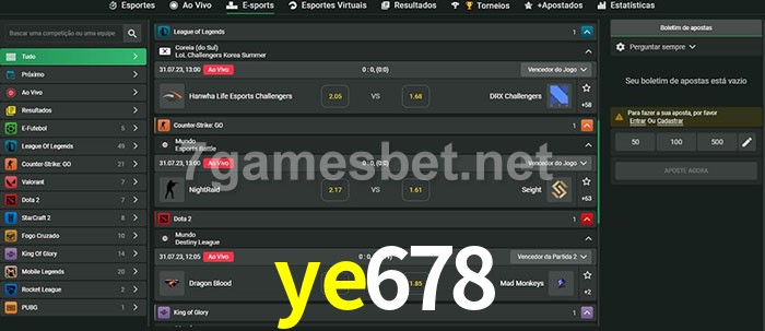 O ye678 oferece uma grande seleção de opções de apostas em e-sports com probabilidades competitivas